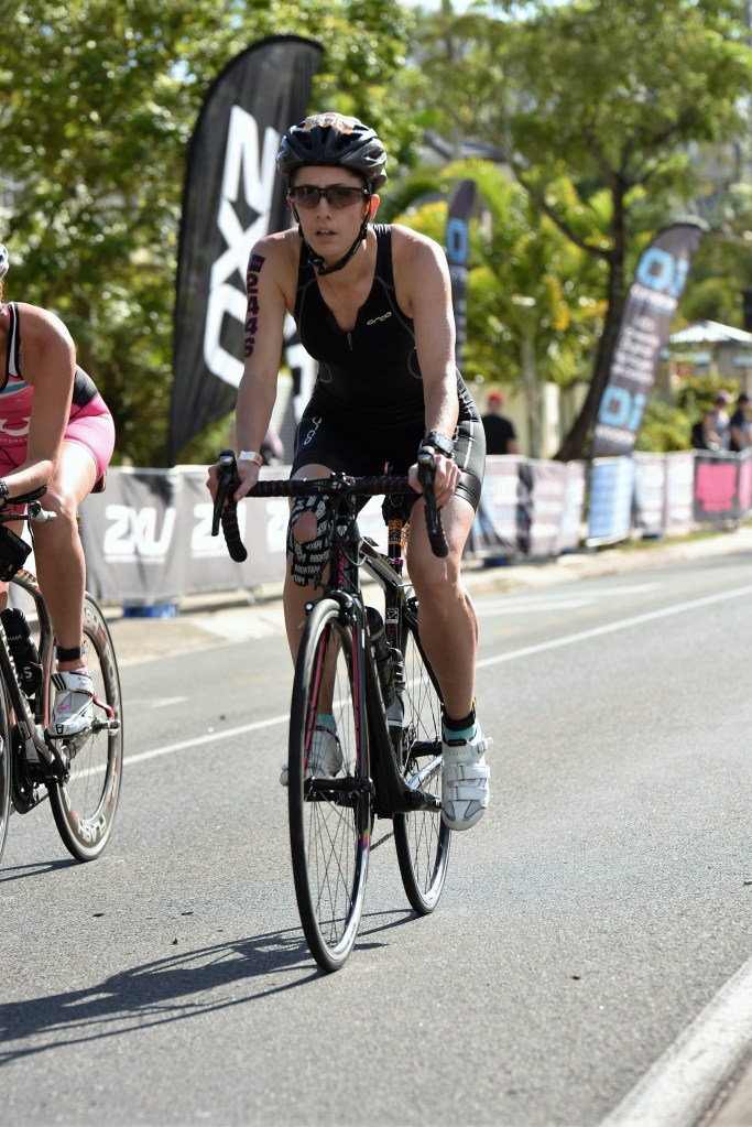 Swim Always my weakest leg, the swim was also my greatest fear leading into Noosa. Having trained in the pool and only completed a handful of swims in freezing, cold open water, I was dreading the 1.5km in the ocean. Thankfully, I started the race mentally switched on and calm. A few days ahead of the event, I tested the water with a quick dip. It was warm, unlike the cooler temperatures experienced during training in Sydney. The water was crystal clear, and although the swell took some getting used to, I felt good. On race day, there were just under 140 women, aged 30-34 years, in my wave which started at 6:53am. About 200m into the swim I copped a mouth full of water and I started to panic. Like, really, freak out! I treaded water and desperately tried to gather myself together. The key was to get my heart rate to drop and settle my breathing. In the 30 seconds or so I was bobbing up and down, trying to still my beating heart, I realised I needed to change up my swimming style to get through the next 1300m. Normally, every three strokes, I breathe, and it was not working out for me. Rather than shifting to breaststroke and backstroke for the rest of the leg, I shifted to two strokes, one breath. Success! The rest of the swim was quite enjoyable as I made my way past and around the line-of-sight and turning buoys. Even though it wasn’t great to have the next wave, and the wave after that, catch me in the water, I am proud that I kept my determination and I didn’t bow out. While it wasn’t the fastest or smoothest swim, I finished in 00:36:34. Something important to note, the GPS tracking of many competitors actually recorded the swim leg as being approximately 1700m, so given that fact, I’m actually really happy with my time!